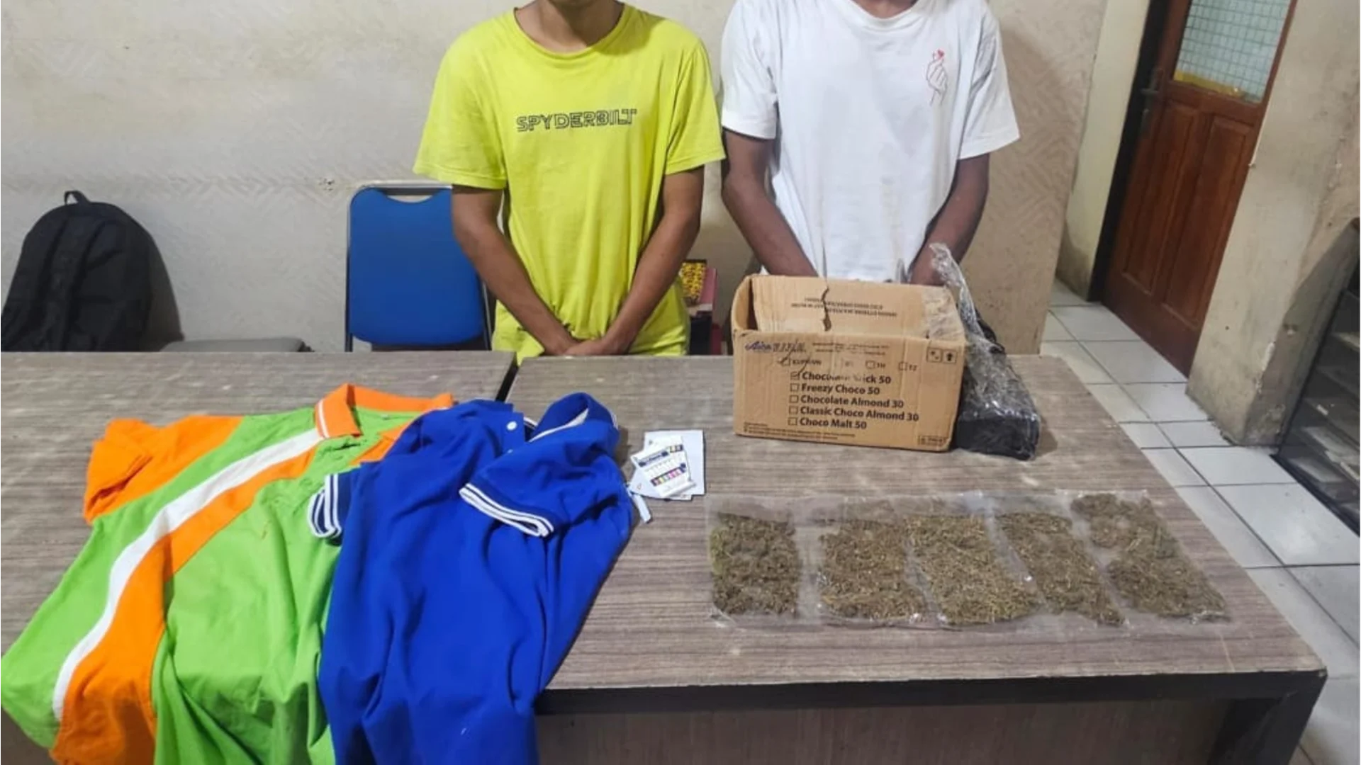 ”Saat di buka, plastik yang sudah di lakban tadi di dalamnya ditemukan lima plastik bening ukuran sedang yang berisikan narkotika golongan I jenis ganja. Dan keduanya kemudian dibawa ke Mapolrseta guna langkah hukum,” ujarnya.