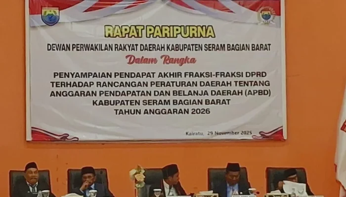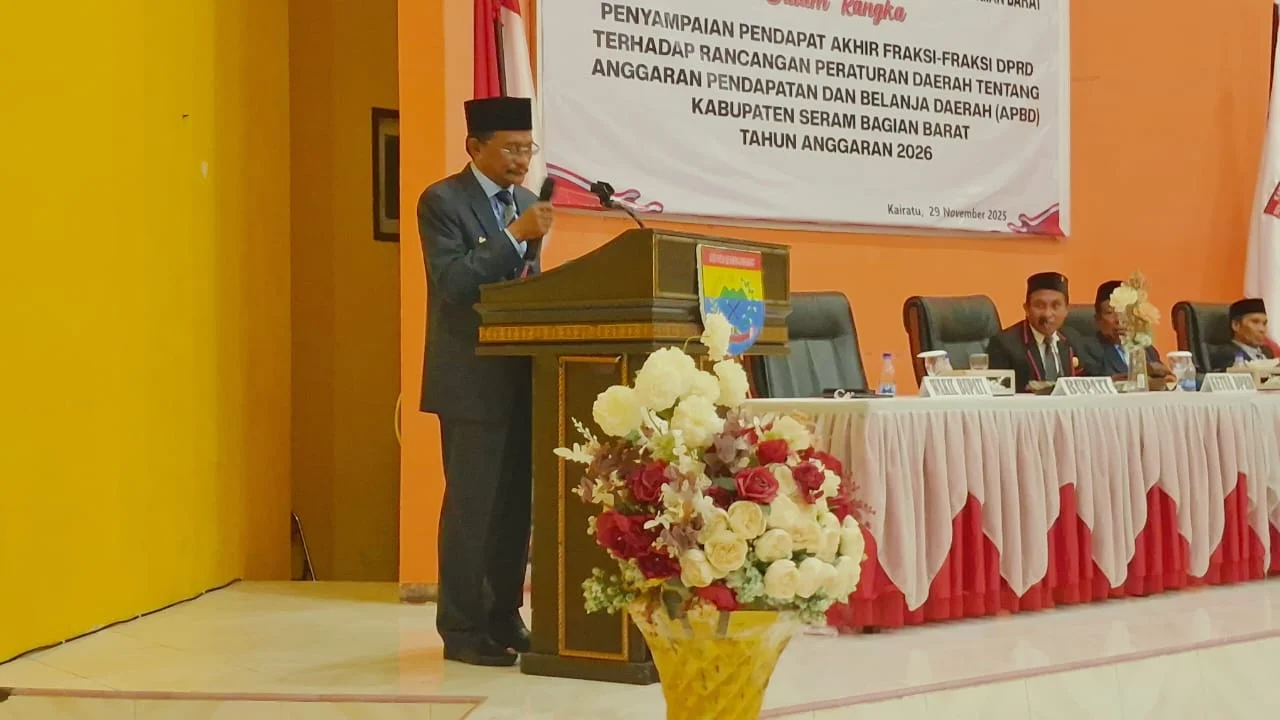 Nusaelaknews.com | Kairatu, Maluku – Bupati Seram Bagian Barat (SBB), Asri Arman, memberikan jawaban resmi Eksekutif atas pendapat fraksi-fraksi DPRD terkait Rancangan Peraturan Daerah (Raperda) APBD Tahun Anggaran 2026.