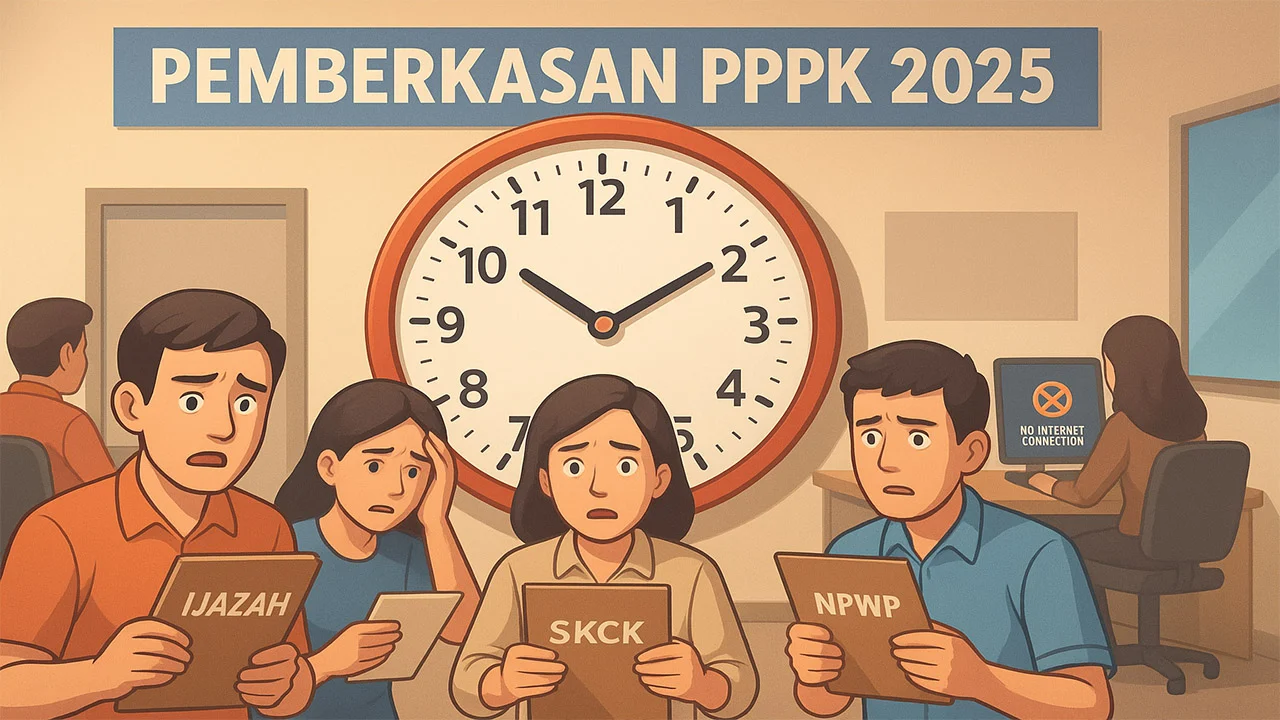 Peserta diwajibkan melengkapi dokumen administrasi, mulai dari ijazah, KTP, SK pengalaman kerja, hingga surat pernyataan, melalui sistem online. Namun, jaringan internet yang lumpuh membuat banyak peserta gagal mengunggah berkas.