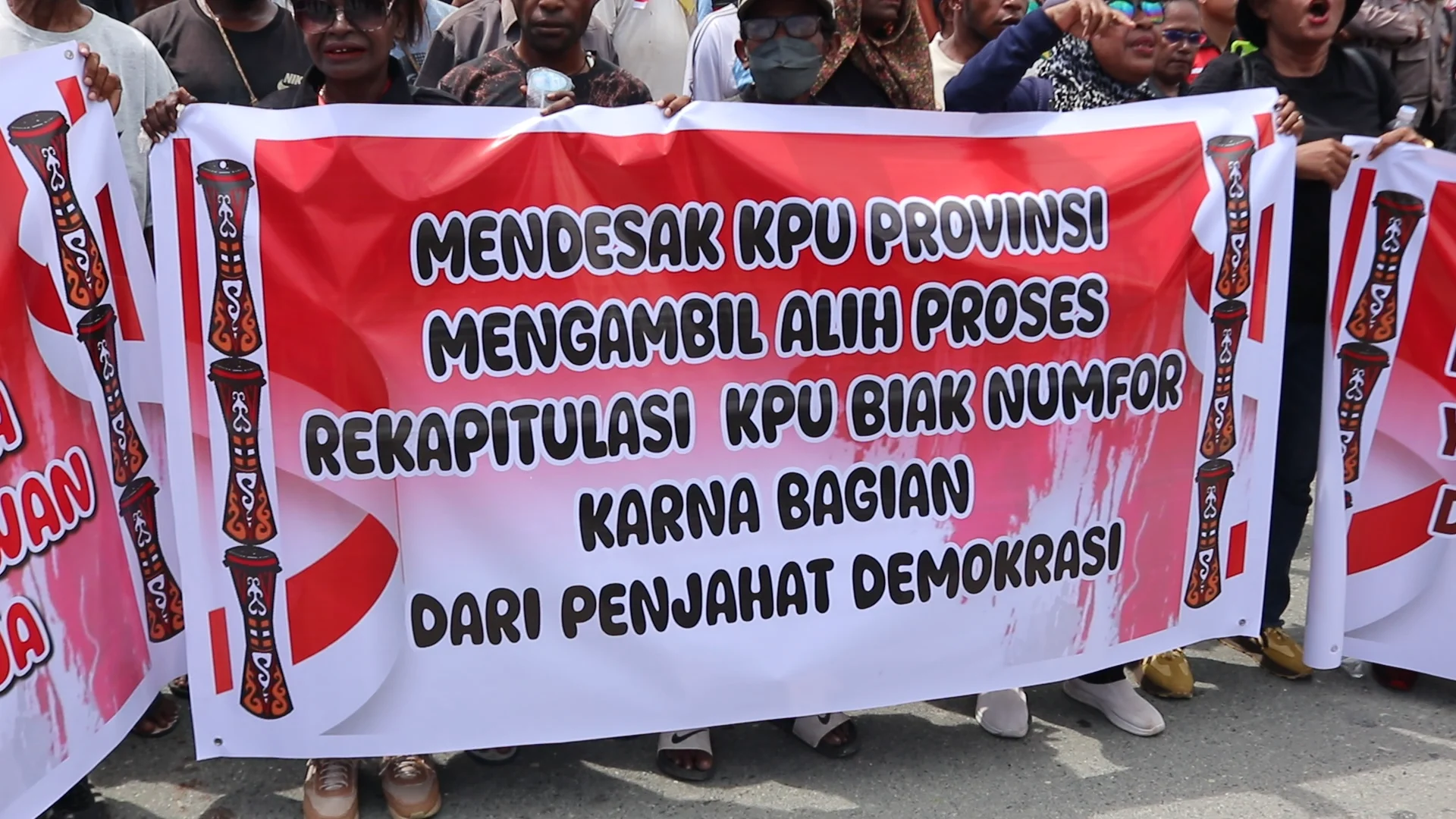 Ketiga, mereka menuntut KPU Provinsi Papua mengambil alih dan mencopot ketua KPU Kabupaten Biak Numfor yang dinilai sebagai bagian dari tim sukses Paslon 02 MARI-YO. Serta mengambil alih tugas KPU kabupaten Keerom, KPU Kepulauan Yapen, KPU Supiori yang nyata-nyata telah melakukan kejahatan demokrasi mencederai kedaulatan rakyat.