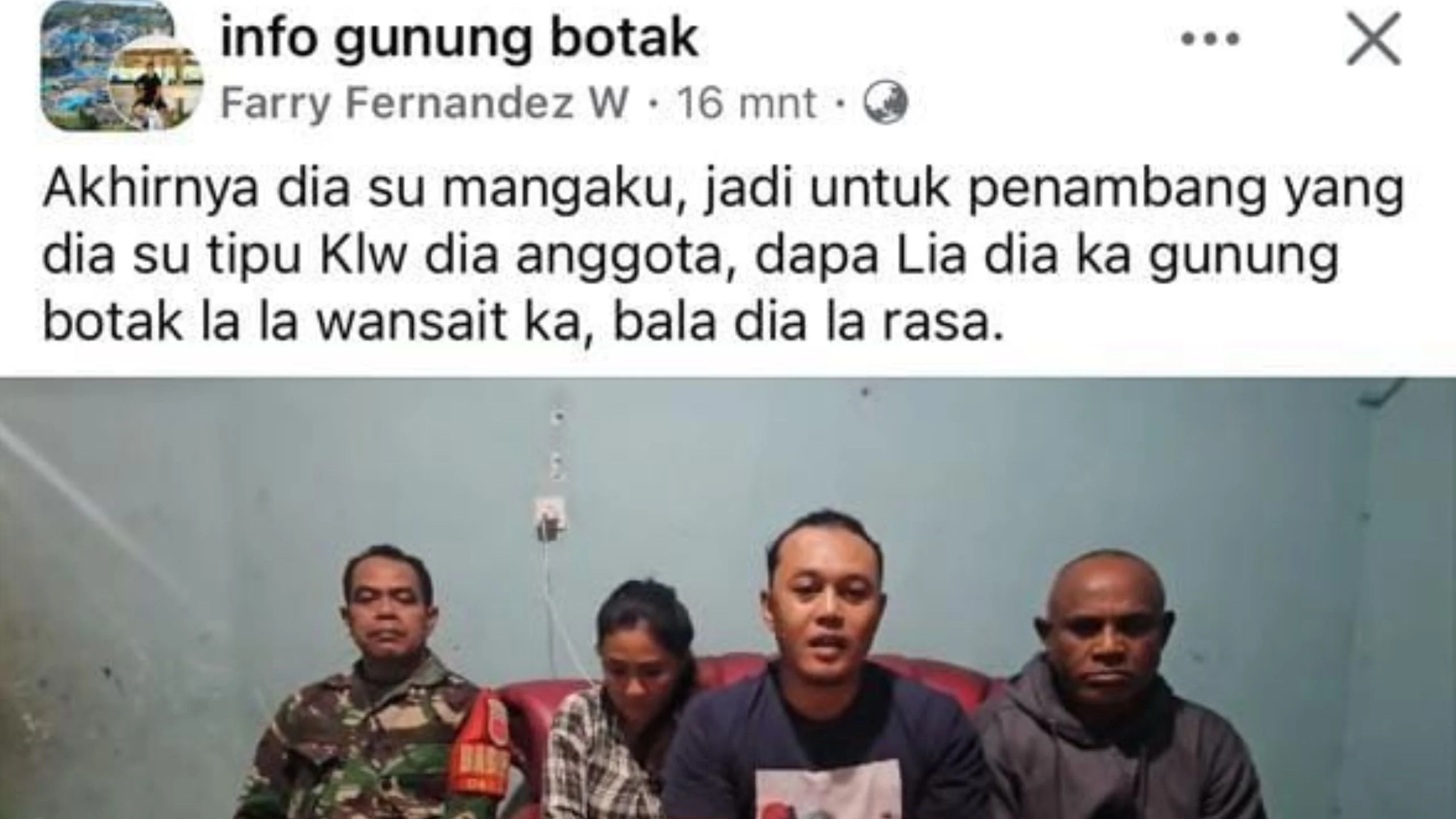 Postingan itu diunggah oleh akun bernama Farry Fernandez di Grup Facebook Menjaring Bupati SBB serta Info Gunung Botak. Unggahan tersebut menyasar masyarakat Kabupaten Seram Bagian Barat (SBB), khususnya warga yang beraktivitas di kawasan tambang emas Gunung Botak.