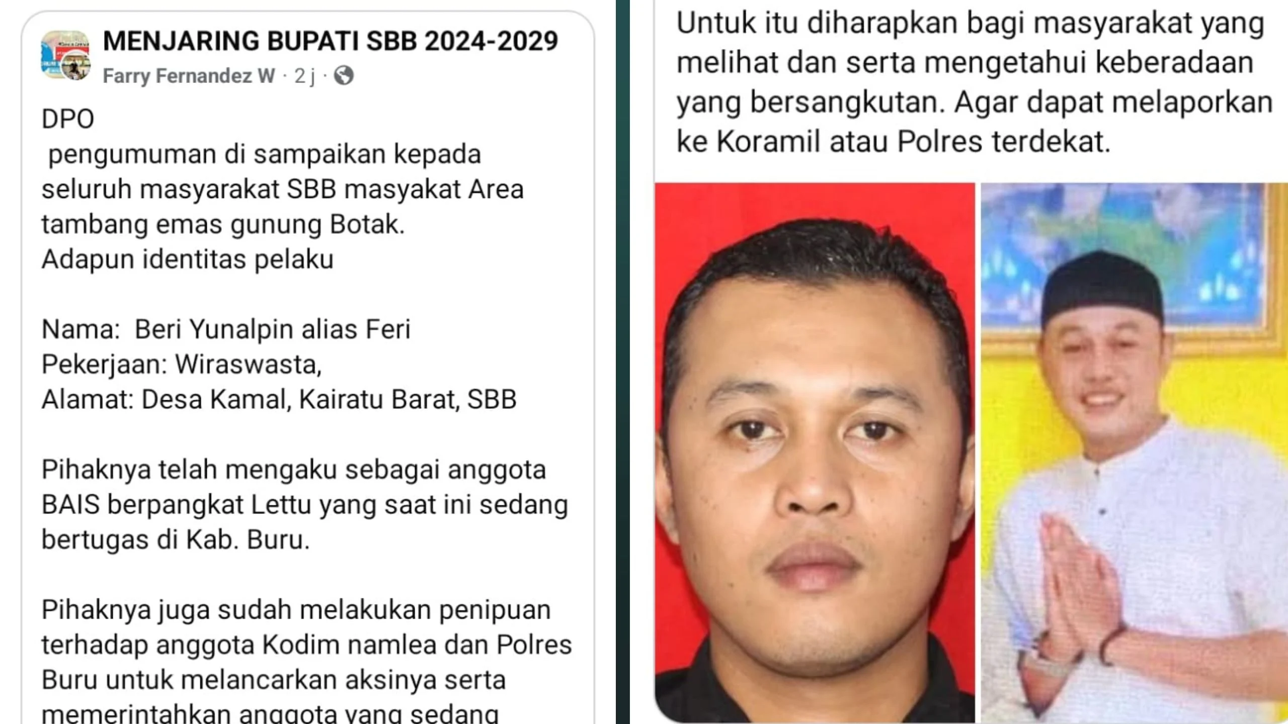 Dalam narasi yang ditulis akun tersebut, Farry Fernandez menyebut Beri Yunalpin alias Feri mengaku sebagai anggota Badan Intelijen Strategis (BAIS) TNI dengan pangkat Letnan Satu (Lettu) yang diklaim sedang bertugas di Kabupaten Buru.
