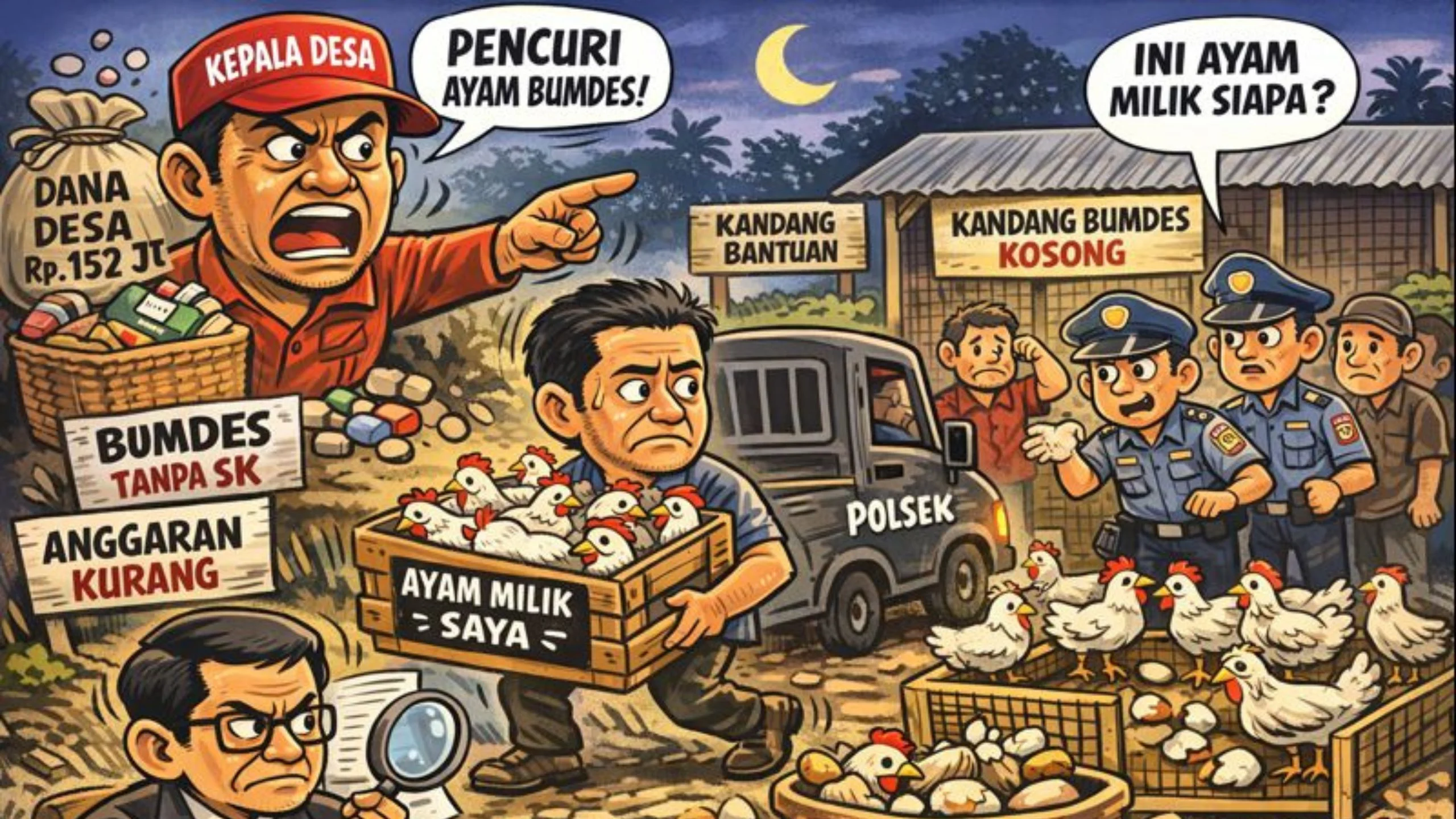 Situasi memanas ketika Chandra menjual ayam yang diklaim sebagai miliknya. Tindakan tersebut tidak diterima oleh kepala desa, yang kemudian memerintahkan kepala dusun dan RT untuk melaporkan Chandra ke Polsek Kairatu dengan tuduhan pencurian ayam milik BUMDes.