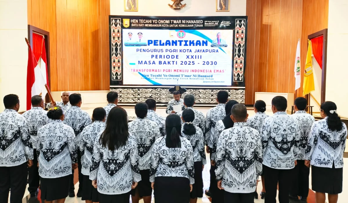 Pelantikan yang dilakukan oleh Ketua PGRI Provinsi Papua, Dr. Elia Waromi, S.Pd., M.Pd, berlangsung di aula Siansor Kantor Walikota Jayapura, Jumat (24/10/2025).