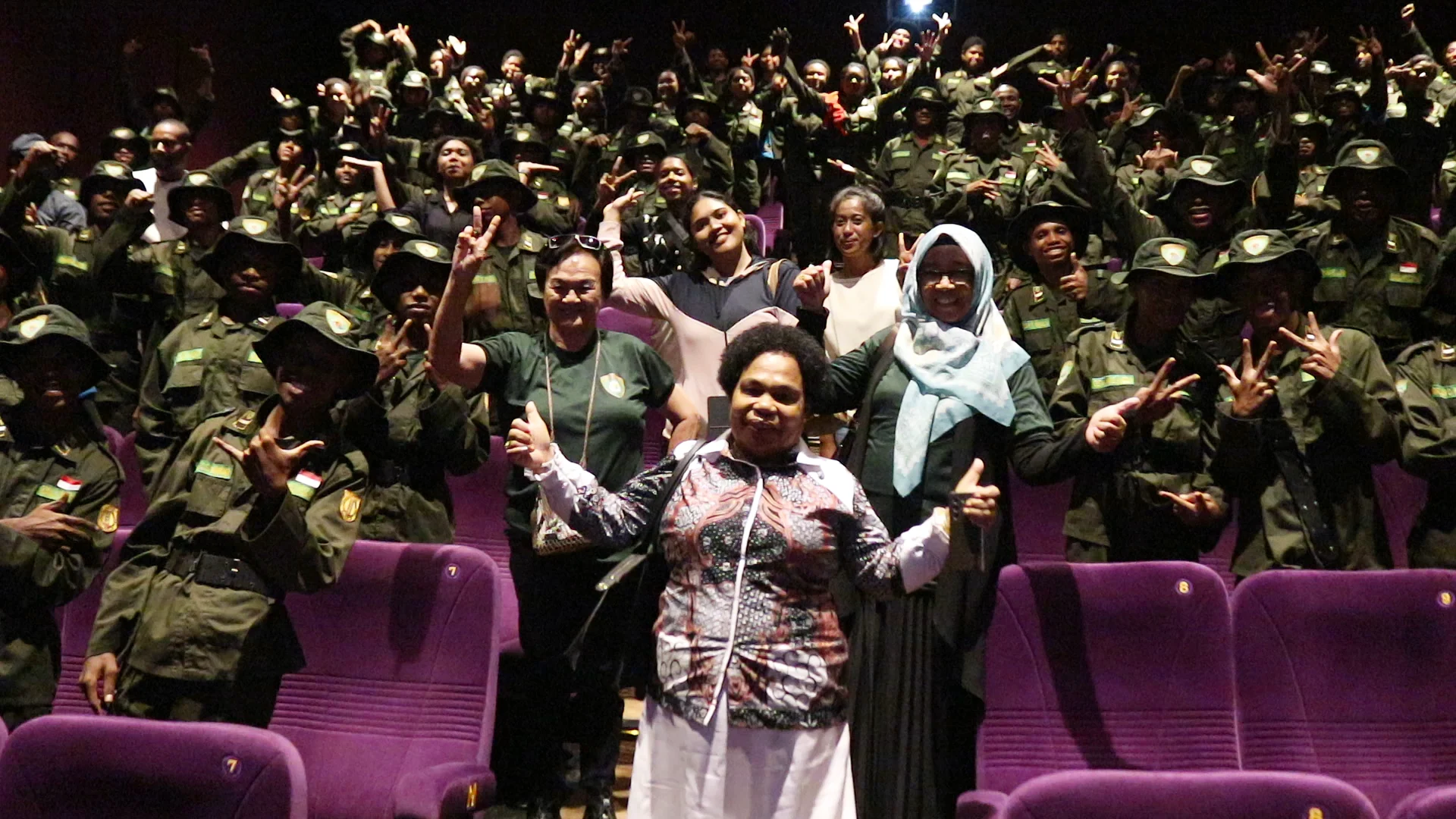 Nobar yang berlangsung di Studio Film di Mall Jayapura, Kamis (24/7/2025) tersebut, juga didampingi oleh para pembimbing siswa siswi SMA UTC dari Rindam 17 Cendrawasih.