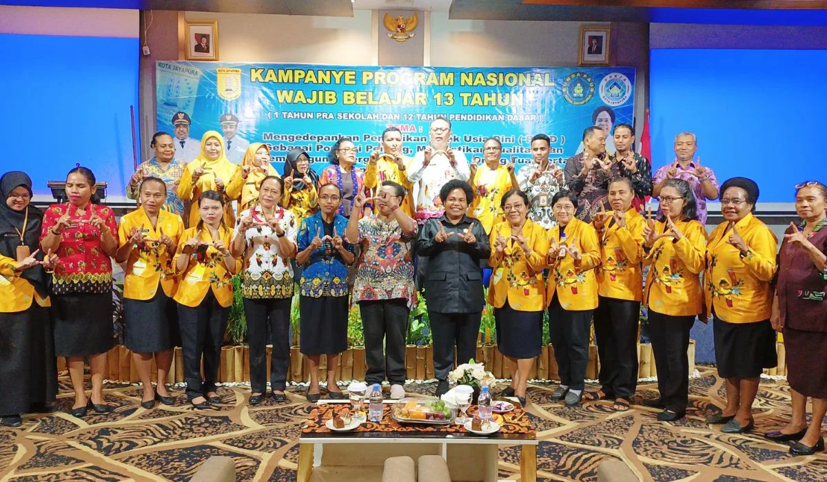 Nusaelaknews.com | Jayapura, Papua – Kelompok Kerja (Pokja) Bunda PAUD Kota Jayapura menyelenggarakan Kampanye Program Nasional Wajib Belajar 13 Tahun di Grand Abe Hotel Abepura pada Kamis, 16 Oktober 2025.